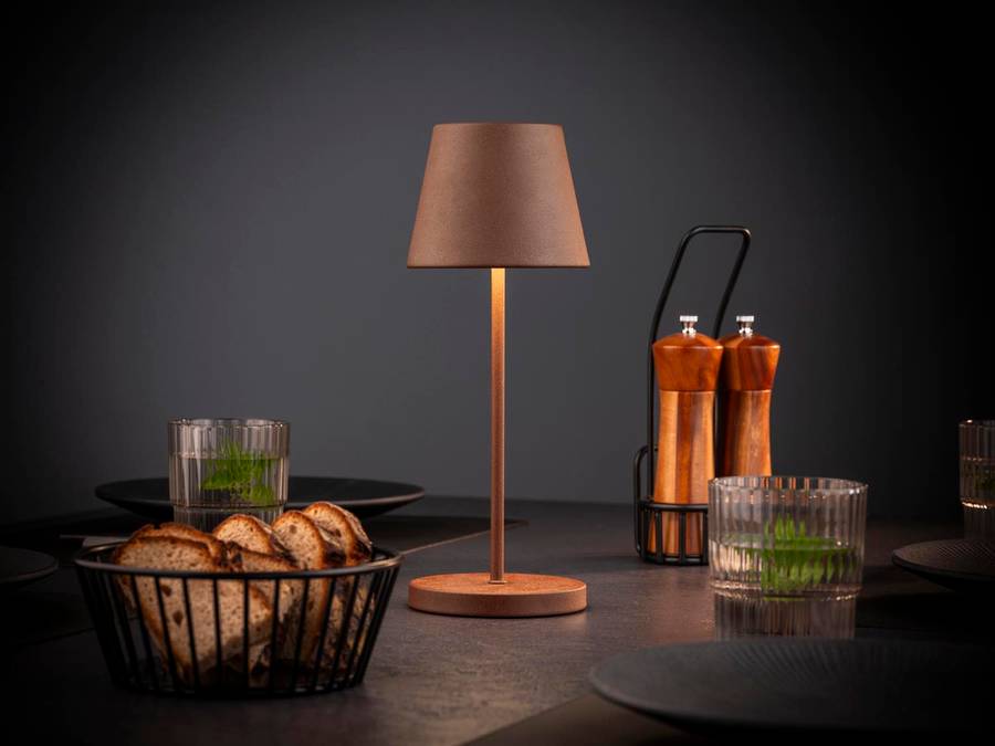 Настольная лампа MERLE сочетает в себе стильный дизайн и практичную функциональность в компактном формате. Диаметр лампы составляет 11 см, а высота - 30,5 см. Она изготовлена из высококачественного металла в современном ржавом стиле, добавляя элегантности любому помещению. Оснащенная мощным светодиодом 2,0 Вт, лампа обеспечивает световой поток 270 люмен и имеет три уровня яркости. Благодаря функции CCT (коррелированная цветовая температура) цвет света можно регулировать индивидуально: от теплого, атмосферного света (2200 К) до уютного 2700 К и нейтрального 3500 К.