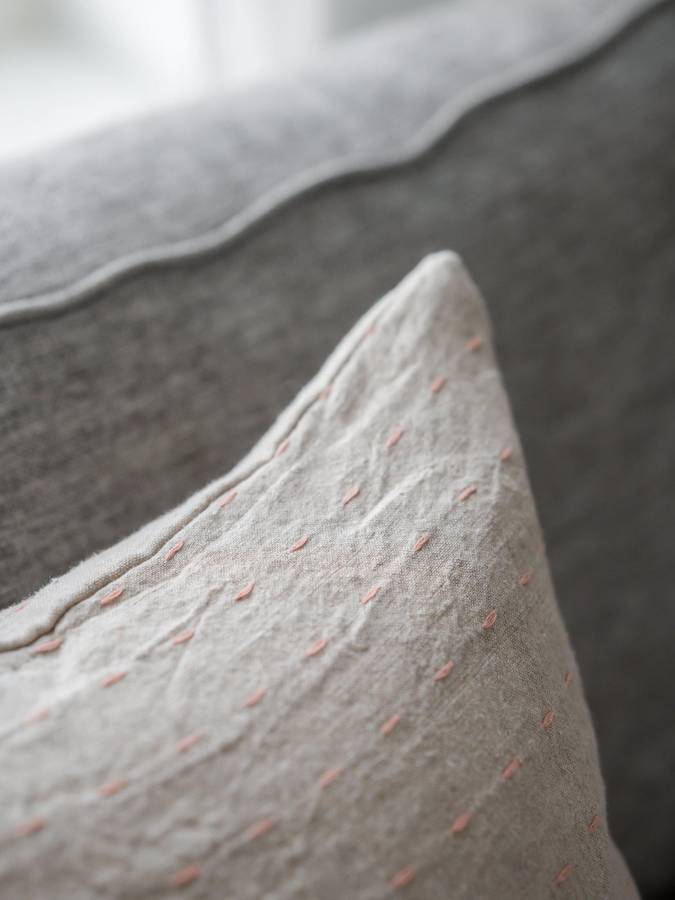 Наволочка из валяного льна с эффектом стирки и вышивкой, с потайной застежкой-молнией снизу. Размер: 50 x 50 см. В комплект входит внутренняя подушка с синтетическим наполнителем размером 50 x 50 см. Изделие сертифицировано по стандарту STANDARD 100 OEKO-TEX. Сертификация гарантирует, что изделие прошло испытания и не содержит веществ, которые могут быть вредны для здоровья и окружающей среды.