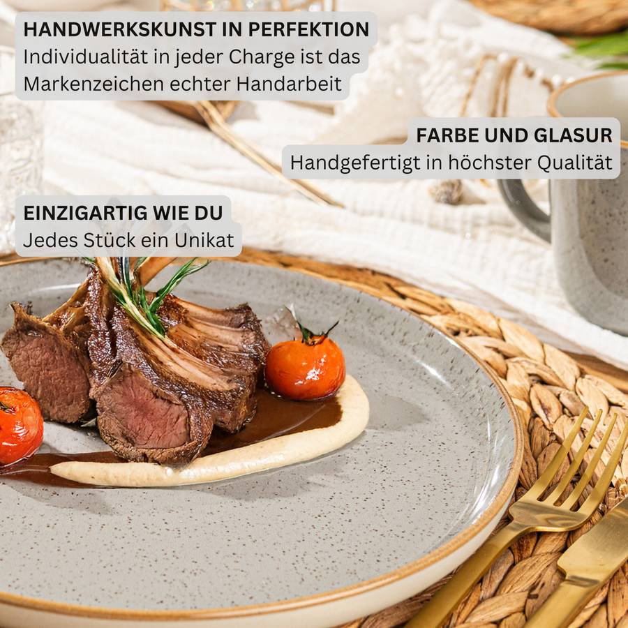 Все тарелки устойчивы к царапинам и имеют гладкую поверхность, созданную особым процессом обжига. Это гарантирует чистые и минималистичные формы, которые подойдут для любой сервировки стола. Изготовленные из прочной керамики, они идеально подходят для повседневного использования, будь то семейные обеды или прием гостей. Их также можно использовать в микроволновой печи и посудомоечной машине, что упрощает их использование и очистку.