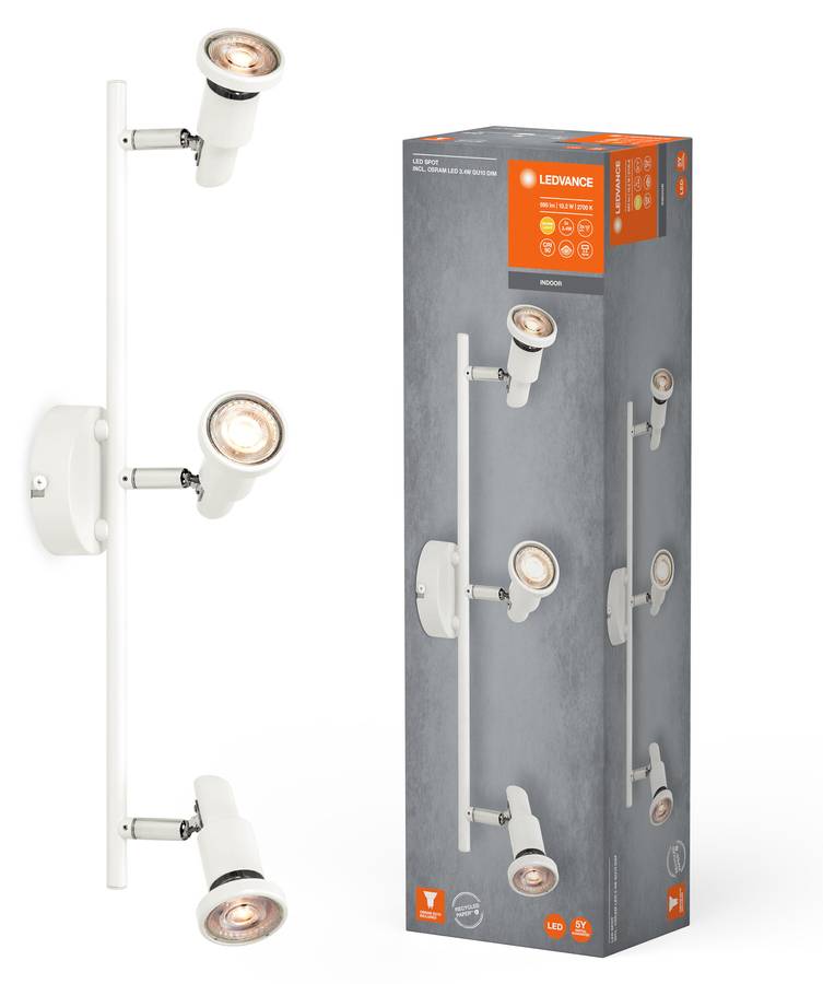 - Область применения В комплект поставки: 1x LED Spot GU10 Белый 3 x 3,4 Вт 927 DIM