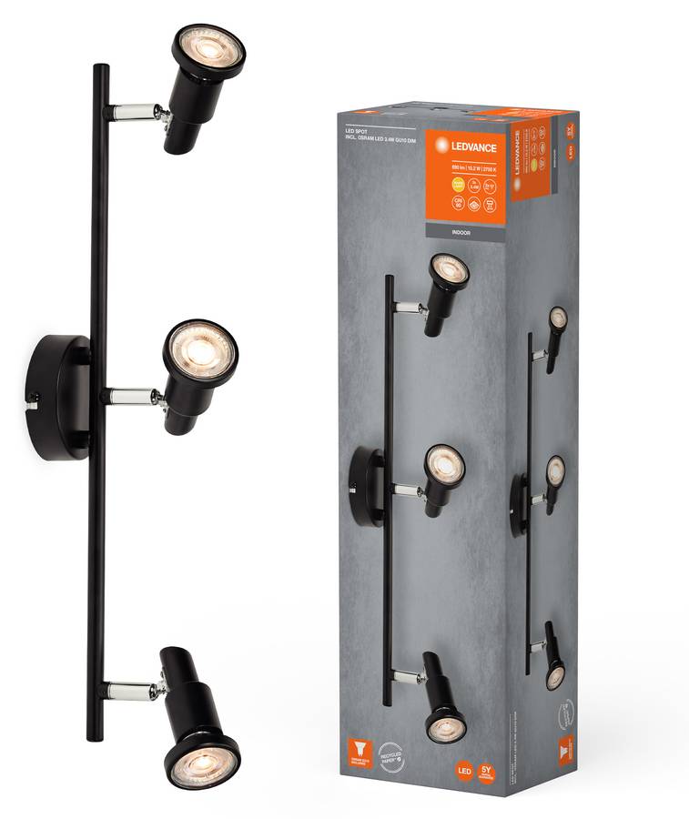 - Область применения В комплект поставки: 1x LED Spot GU10 Black 3 x 3,4 Вт 927 DIM