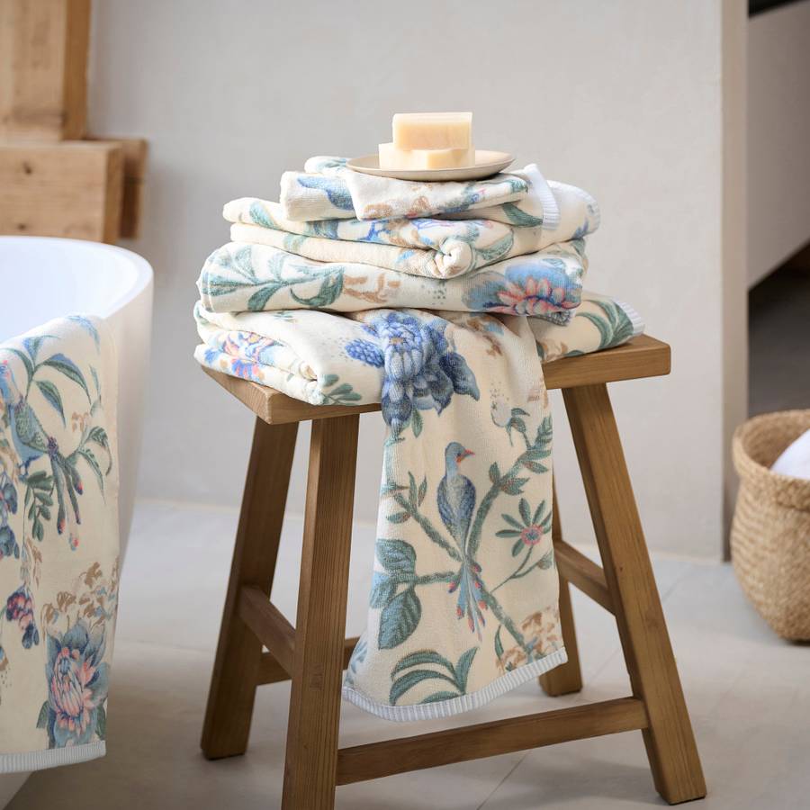 Банное полотенце Pip Velours Тайный сад. Романтичные цветы, райские птицы и нежная полосатая кайма источают чистую жизнерадостность. Насладитесь уютными моментами и превратите свою ванную комнату в оазис комфорта. Бархатистая, мягкая велюровая поверхность ласкает и дарит неповторимые ощущения. Для вытирания вам понравится гладкая нижняя сторона из удивительно мягкой, впитывающей махровой ткани.