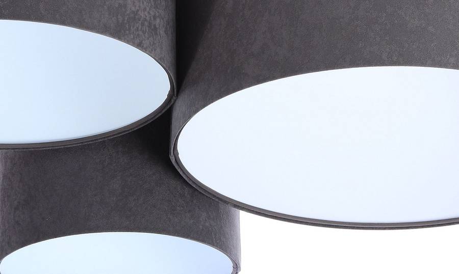 Светильник из коллекции Trio состоит из трех абажуров, каждый из которых имеет свой диаметр, высоту и цвет, что создает очень интересную и гармоничную композицию. Светильник крепится прямо под потолком, поэтому визуально не занимает места. Абажуры изготовлены из пластика, обтянутого велюровой тканью (микрофиброй). Светильник с тремя абажурами легко осветит любой интерьер (лампочки в комплект не входят). Абажуры устойчивы к ультрафиолетовому излучению, а ткань не выцветает со временем. Внутреннюю часть абажуров можно протирать влажной тканью, а велюровые поверхности - специальным средством для чистки рулонов белья. Светильник изготовлен вручную и полностью произведен в Польше.