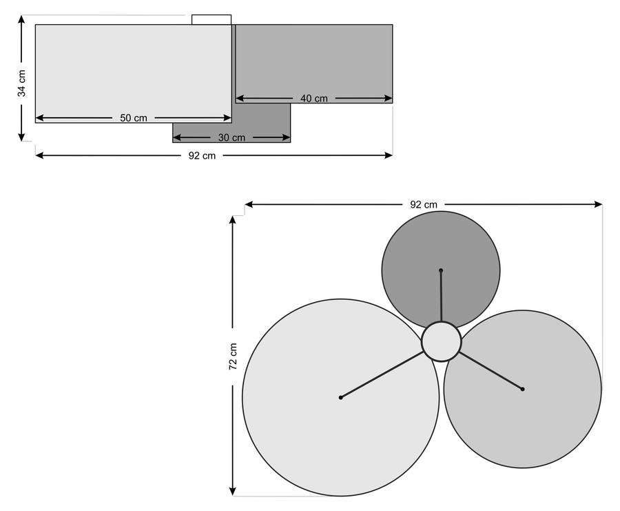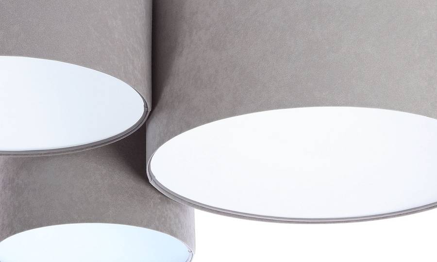 Светильник из коллекции Trio состоит из трех абажуров, каждый из которых имеет свой диаметр, высоту и цвет, что создает очень интересную и гармоничную композицию. Светильник крепится прямо под потолком, поэтому визуально не занимает места. Абажуры изготовлены из пластика, обтянутого велюровой тканью (микрофиброй). Светильник с тремя абажурами легко осветит любой интерьер (лампочки в комплект не входят). Абажуры устойчивы к ультрафиолетовому излучению, а ткань не выцветает со временем. Внутреннюю часть абажуров можно протирать влажной тканью, а велюровые поверхности - специальным средством для чистки рулонов белья. Светильник изготовлен вручную и полностью произведен в Польше.