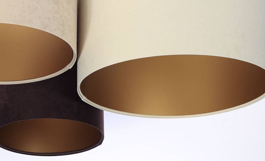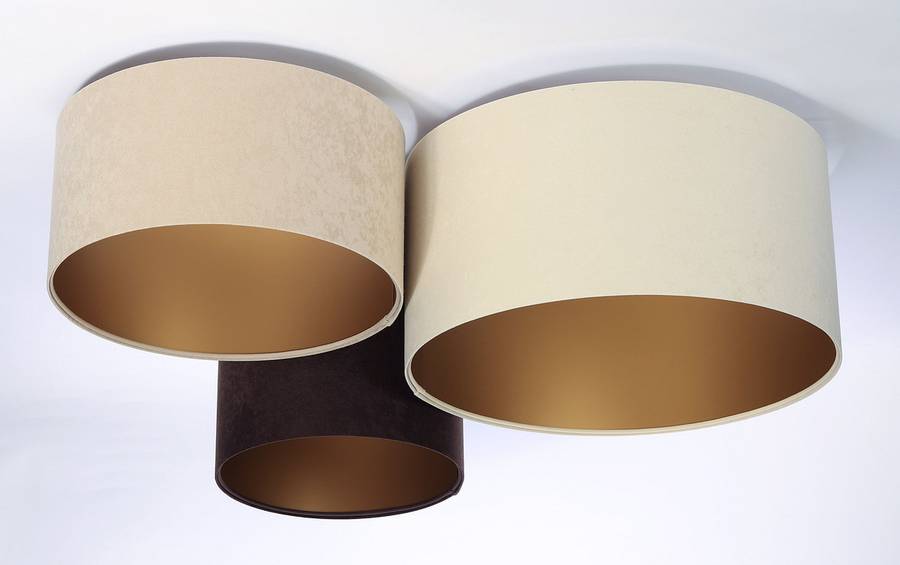 Светильник из коллекции Trio состоит из трех абажуров, каждый из которых имеет свой диаметр, высоту и цвет, что создает очень интересную и гармоничную композицию. Светильник крепится прямо под потолком, поэтому визуально не занимает места. Абажуры изготовлены из пластика, обтянутого велюровой тканью (микрофиброй). Светильник с тремя абажурами легко осветит любой интерьер (лампочки в комплект не входят). Абажуры устойчивы к ультрафиолетовому излучению, а ткань не выцветает со временем. Внутреннюю часть абажуров можно протирать влажной тканью, а велюровые поверхности - специальным средством для чистки рулонов белья. Светильник изготовлен вручную и полностью произведен в Польше.