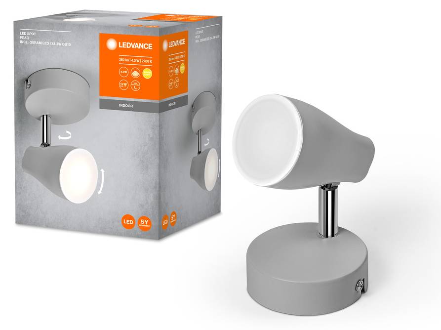 - Комплект поставки: 1xLED SPOT PEAR 1X4.3W 827 GU10 GR