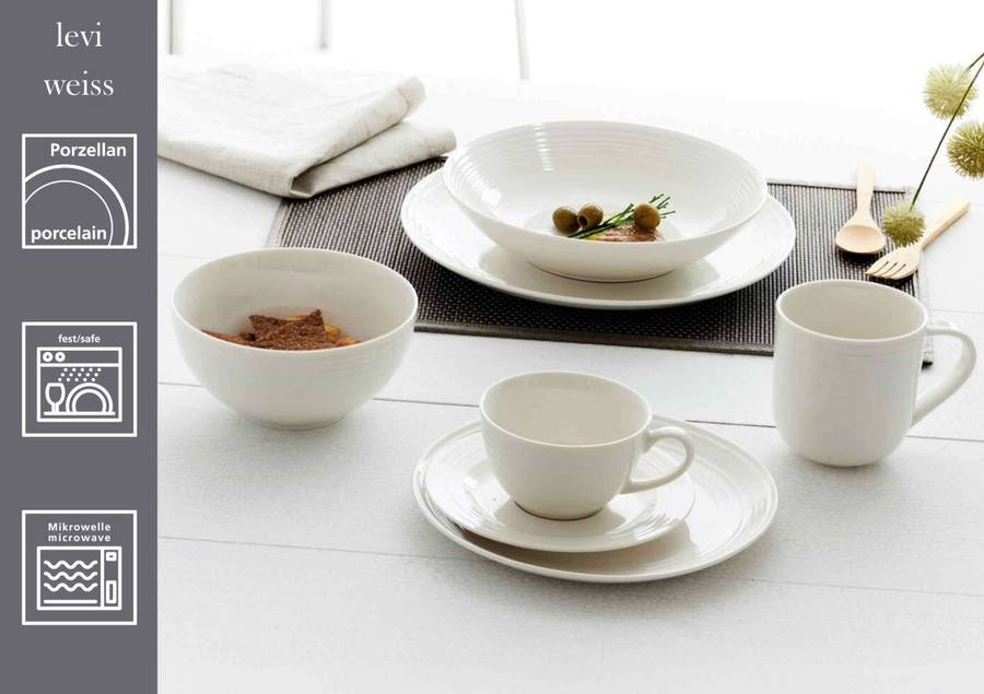 Тонкое очарование: благодаря своей приятной сдержанной эстетике, гармоничным простым формам и мягким цветам, Levi - это предмет посуды, который элегантно сопровождает нас в течение дня и является желанным дополнением к каждой трапезе. Тонкие рельефные полосы, идущие по верхнему и внешнему краям посуды, придают в остальном очень чистому дизайну естественную, деревенскую утонченность и идеально дополняют образ и атмосферу. Levi прекрасно вписывается как в атмосферу скандинавского загородного дома, так и в городской индустриальный стиль лофт. Благодаря тональному сочетанию серого, синего, кремового и белого цветов он излучает кажущуюся непринужденную атмосферу с гарантированным ощущением благополучия.