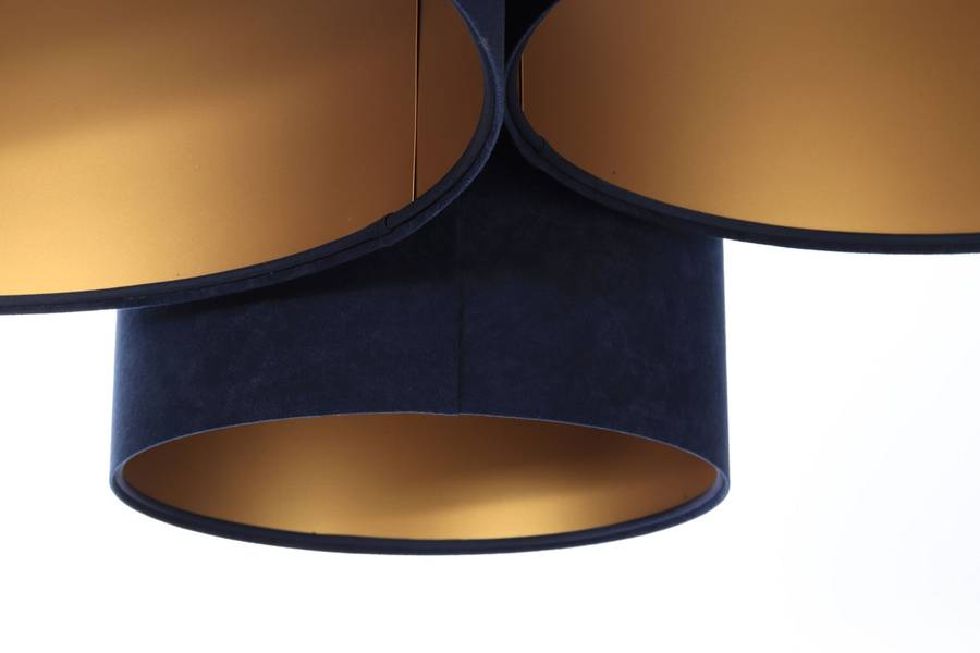 Светильник из коллекции Trio состоит из трех абажуров, каждый из которых имеет свой диаметр, высоту и цвет, что создает очень интересную и гармоничную композицию. Светильник крепится прямо под потолком, поэтому визуально не занимает места. Абажуры изготовлены из пластика, обтянутого велюровой тканью (микрофиброй). Светильник с тремя абажурами легко осветит любой интерьер (лампочки в комплект не входят). Абажуры устойчивы к ультрафиолетовому излучению, а ткань не выцветает со временем. Внутреннюю часть абажуров можно протирать влажной тканью, а велюровые поверхности - специальным средством для чистки рулонов белья. Светильник изготовлен вручную и полностью произведен в Польше.