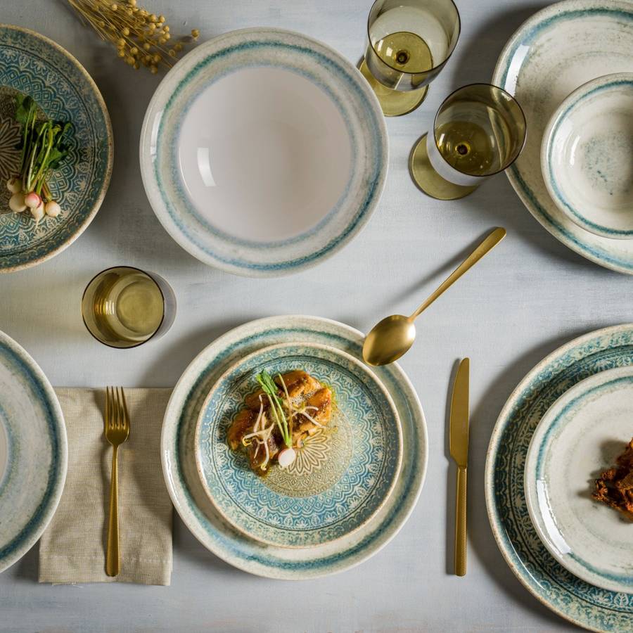 Rivus сочетает в себе этнические узоры Средиземноморья с современностью, создавая уникальную атмосферу для подачи блюд. Спиральные узоры, напоминающие течение воды, и синие и землистые тона, напоминающие отражения в реке, придают коллекции глубину и естественную эстетику. Благодаря двум различным вариантам узоров Rivus позволяет шеф-поварам раскрыть свой творческий потенциал.
