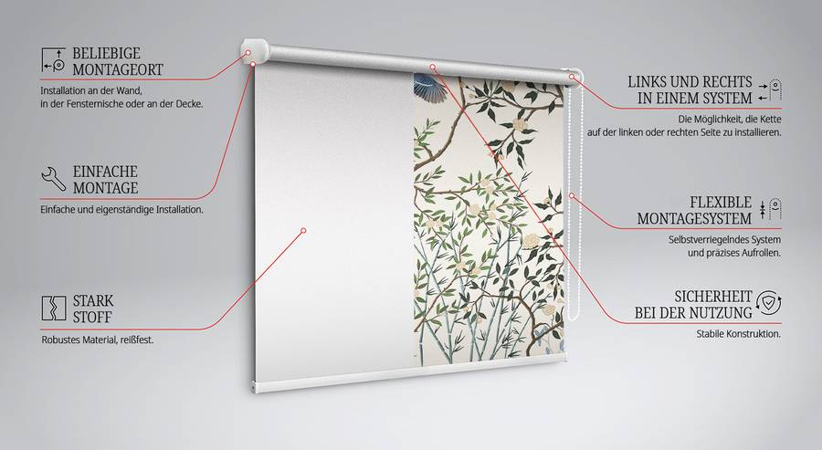 • Примечание по размерам:Общая ширина жалюзи - это ширина ткани + 5 см (труба 1 см + система крепления 4 см)