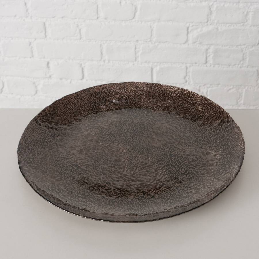 Декоративная стеклянная тарелка MARONI, 32 см, коричневого цвета - элегантный дизайн, который обогатит любую комнату.