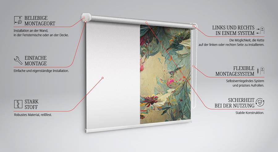 • Примечание по размерам:Общая ширина жалюзи - это ширина ткани + 5 см (труба 1 см + система крепления 4 см)