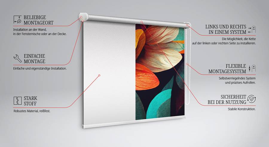 • Примечание по размерам:Общая ширина жалюзи - это ширина ткани + 5 см (труба 1 см + система крепления 4 см)