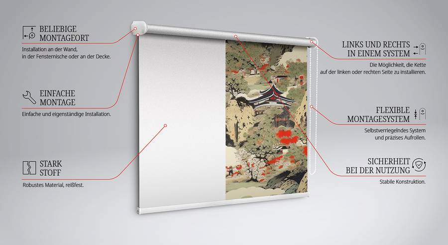 • Примечание по размерам:Общая ширина жалюзи - это ширина ткани + 5 см (труба 1 см + система крепления 4 см)
