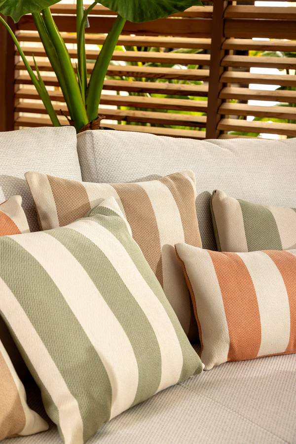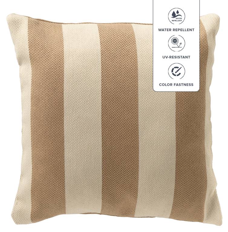Декоративная подушка Cyrus для улицы 45x45 см - Irish Cream. Добавьте элегантности в свое пространство на открытом воздухе с декоративной подушкой Cyrus для улицы. Эта подушка с классическим полосатым дизайном в теплых бежевых тонах Irish Cream станет стильным дополнением к любому садовому гарнитуру. Эта квадратная подушка (45x45 см), наполненная высококачественной внутренней подушкой, обеспечивает превосходный комфорт. Чехол изготовлен из прочного 100% полиэстера, водоотталкивающего и устойчивого к УФ-излучению, сохраняя свой роскошный вид в течение всего сезона. Практичная молния позволяет легко снимать и чистить подушку, что делает ее практичным выбором для ежедневного использования на открытом воздухе. Сертифицировано по стандарту OEKO-TEX STANDARD 100, что гарантирует безопасность и экологичность материалов для вашего дома. Комбинируйте его с другими предметами из коллекции Cyrus, чтобы создать гармоничную и уютную зону отдыха на открытом воздухе.