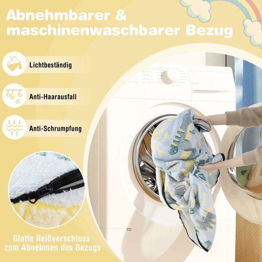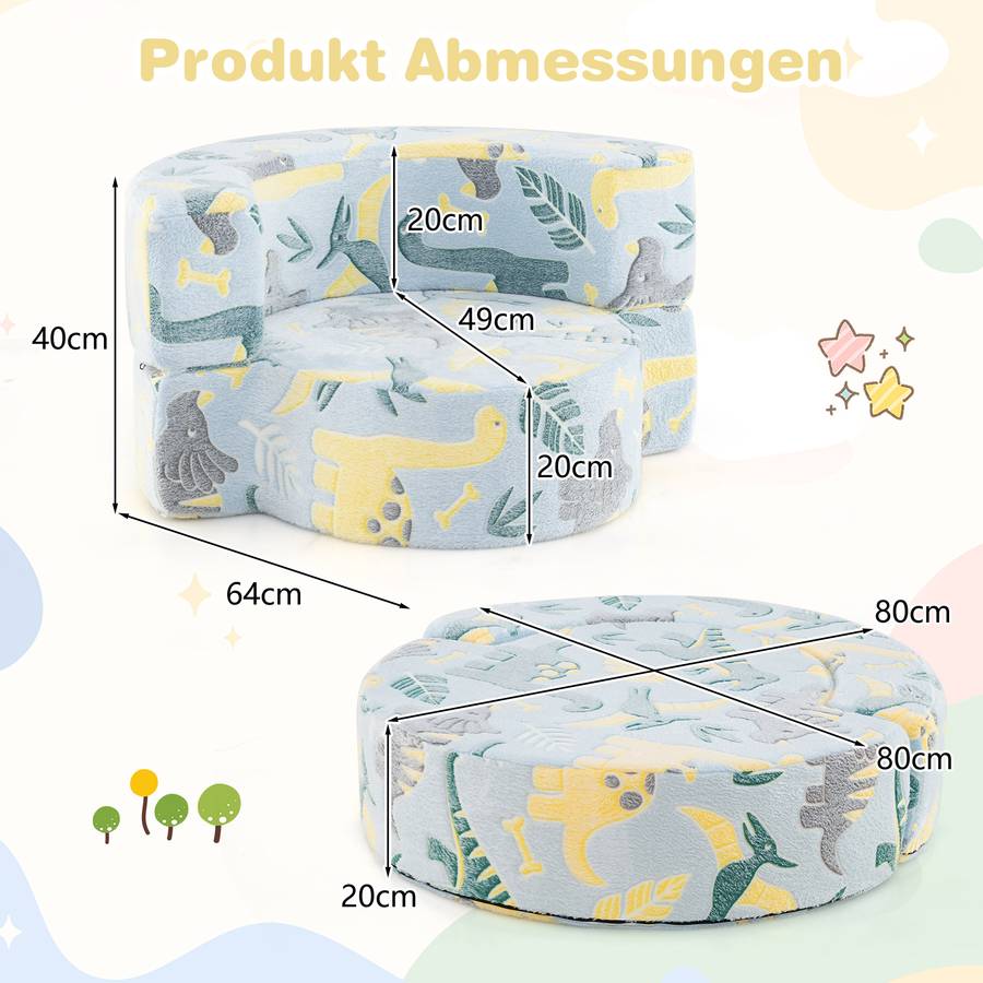 Благодаря своей двойной функциональности детский диван также можно использовать как круглую подушку для игр или отдыха. Это идеальный подарок для мальчиков и девочек от 3 лет.