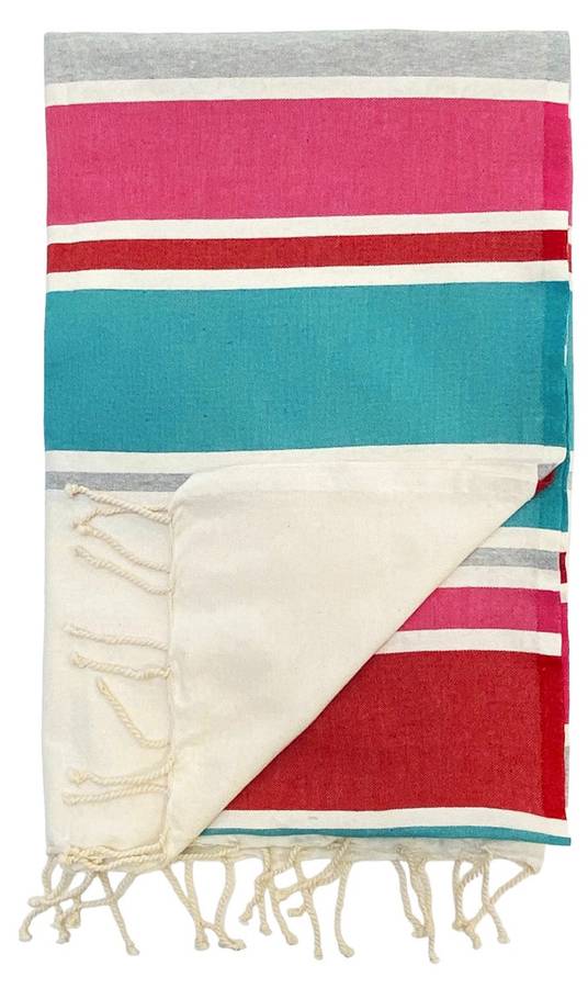 Традиционная фута, элегантная и изысканная, отлично впитывает влагу благодаря своему 100% хлопковому составу. Она компактна, идеально подходит для ручной клади и очень быстро сохнет между купаниями. Она незаменима в ванной, у бассейна или на пляже. Плоская фута, завязанная вокруг талии, превращается в парео. Она также станет ценным подарком!
