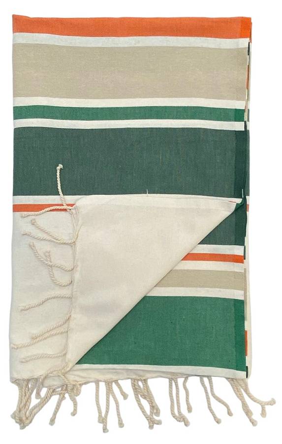 Традиционная фута, элегантная и изысканная, отлично впитывает влагу благодаря своему 100% хлопковому составу. Она компактна, идеально подходит для ручной клади и очень быстро сохнет между купаниями. Она незаменима в ванной, у бассейна или на пляже. Плоская фута, завязанная вокруг талии, превращается в парео. Она также станет ценным подарком!