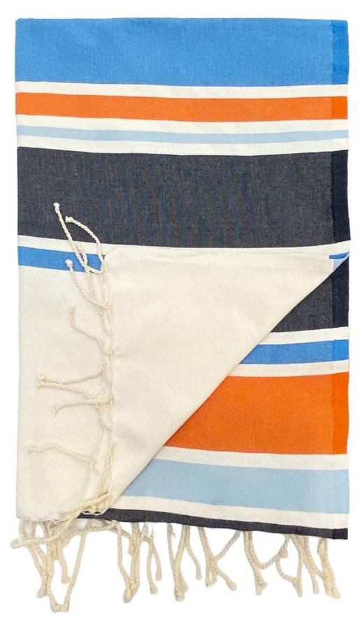 Традиционная фута, элегантная и изысканная, отлично впитывает влагу благодаря своему 100% хлопковому составу. Она компактна, идеально подходит для ручной клади и очень быстро сохнет между купаниями. Она незаменима в ванной, у бассейна или на пляже. Плоская фута, завязанная вокруг талии, превращается в парео. Она также станет ценным подарком!