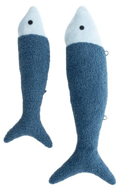 Наш комплект из двух рыбок темно-синего цвета выполнен из мягкой махровой ткани и бархатной повязки. Внутри находится небольшой колокольчик, а сверху - две аппликации из той же ткани, что позволяет повесить его в качестве украшения для детской комнаты. Благодаря колокольчику внутри, эти игрушки идеально подходят для развития моторики рук и слуха у малышей. Дизайн забавный: сочетание двух цветов и разных тканей. Уникальный элемент Deco Wall, призванный придать особый колорит детским комнатам.