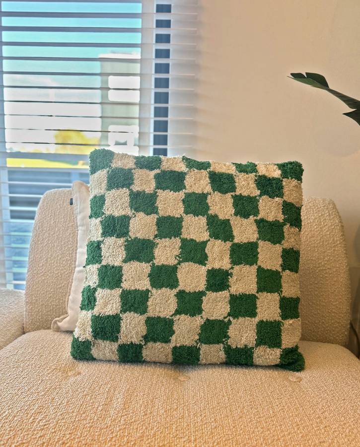 Зеленая клетчатая хлопковая подушка размером 50 х 50 см, идеально подходит для свежего и естественного образа.