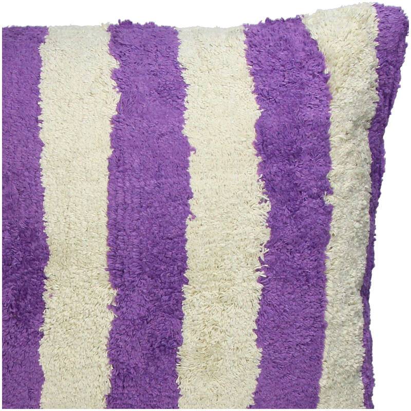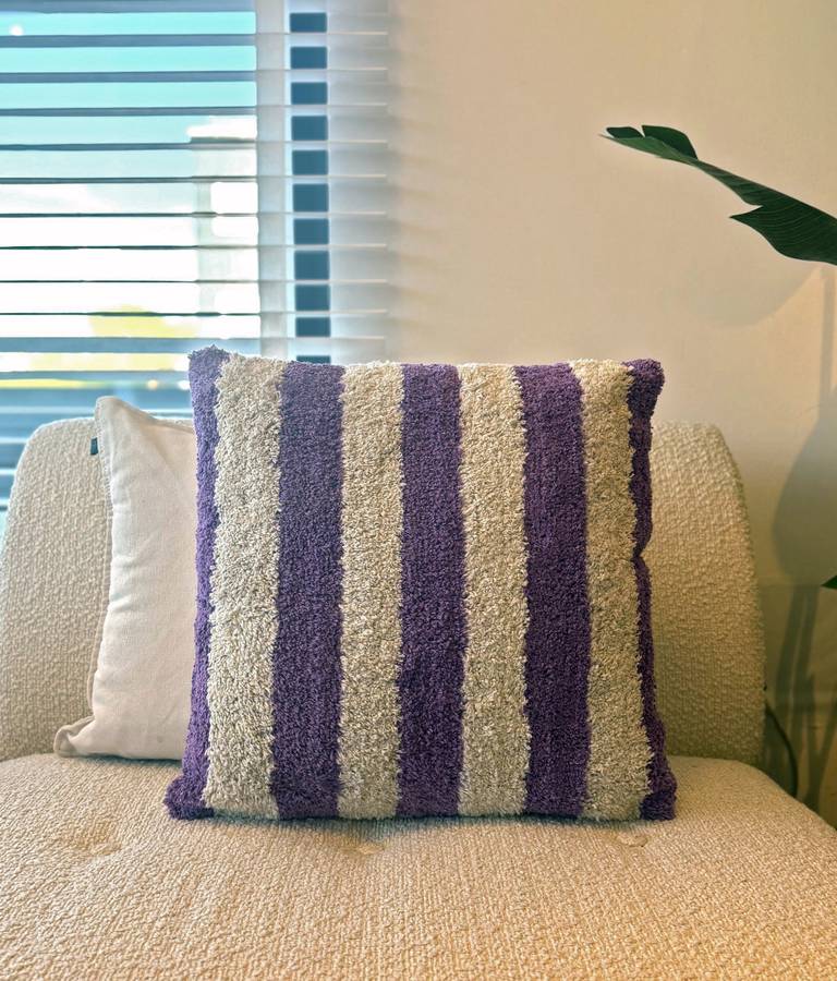 Подушка из хлопка в фиолетовую полоску размером 45 х 45 см идеально подходит для мягкого и стильного декора.