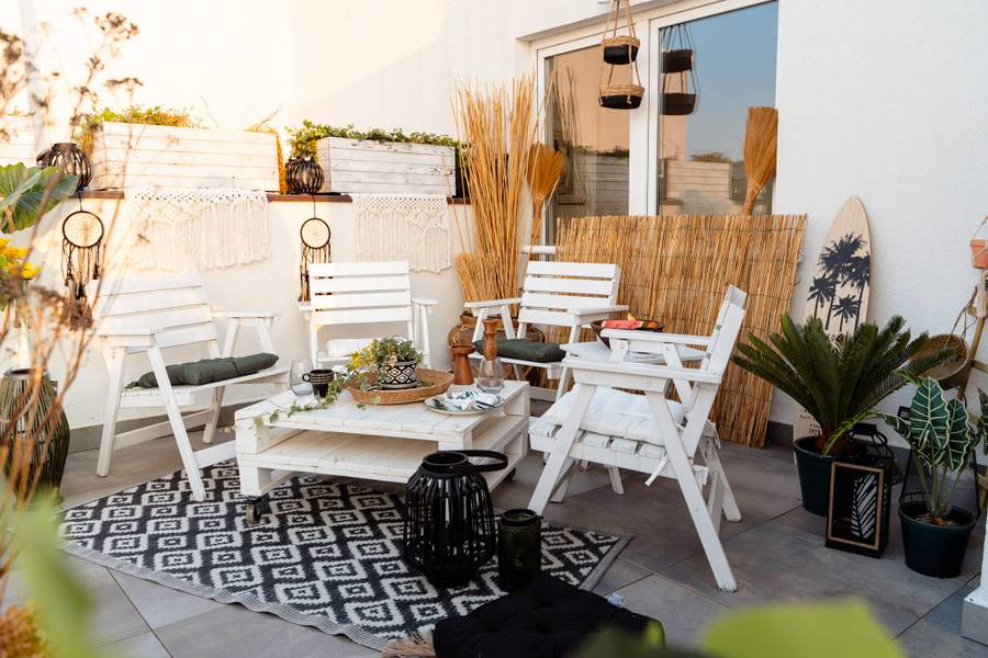 • Изготовлена из полиэстера: Это прочный материал, который можно использовать на улице. За ней легко ухаживать и чистить, а еще она приятна на ощупь, поэтому на ней можно сидеть даже в пижаме или в ванной.