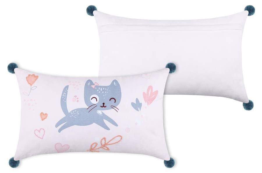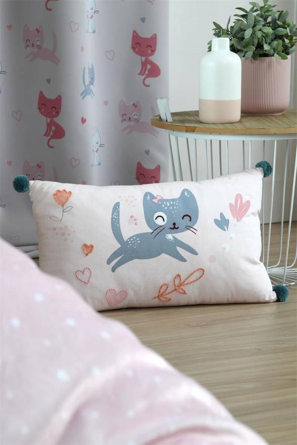 • Очаровательный дизайн:Розовый цвет и рисунок кошки с помпонами придают подушке особое очарование, делая ее идеальным дополнением к детской комнате. Это отличный способ создать в комнате радостную атмосферу.