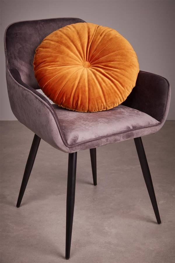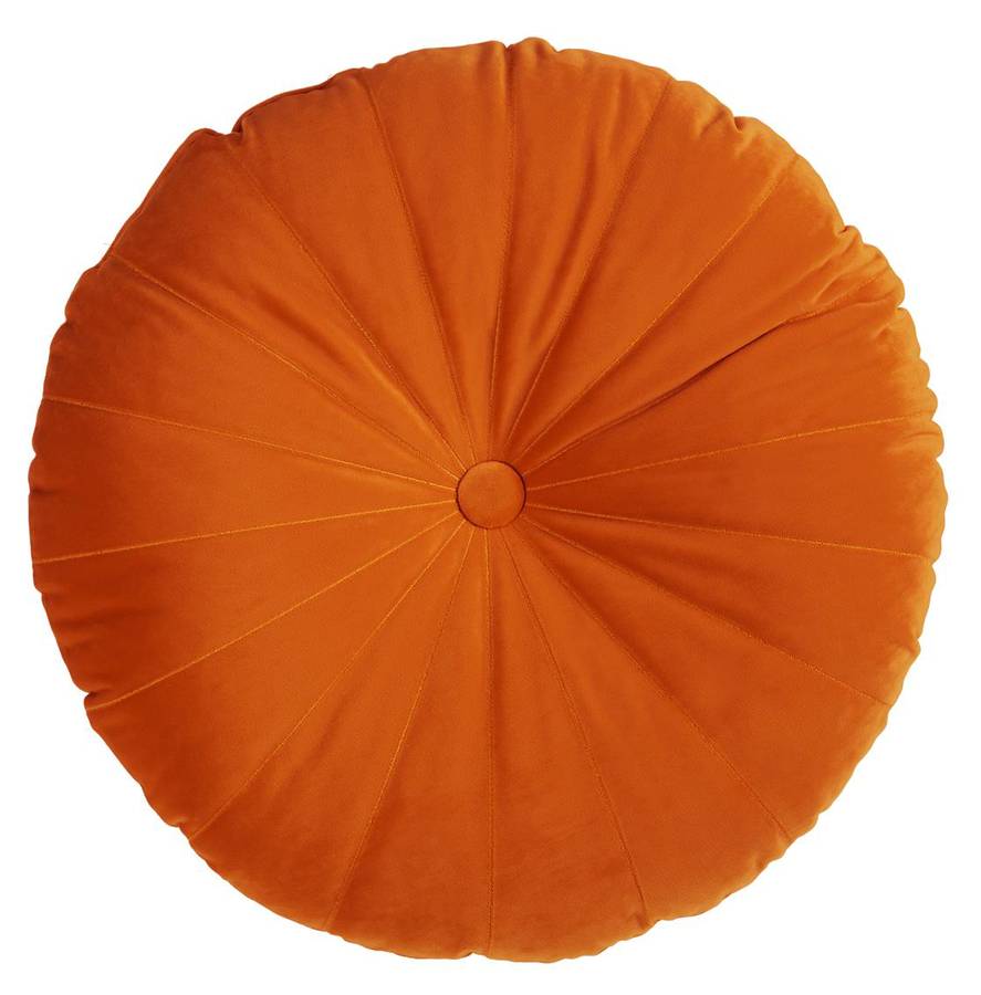 Декоративная подушка Мандарин изготовлена из 100% полиэстерового бархата и имеет диаметр 40 см. В комплект входит эластичная внутренняя подушка из полиэстера. Подушку нельзя стирать в стиральной машине и сушить в сушильной машине.