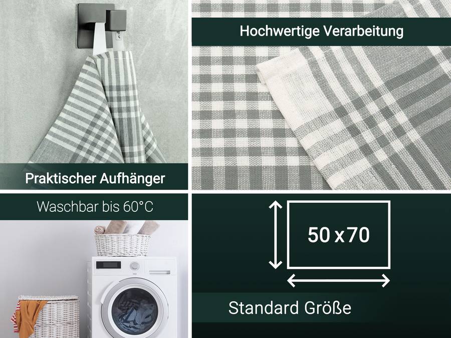 Откройте для себя идеальное сочетание функциональности и стиля с нашими высококачественными кухонными полотенцами! Будь то на кухне, в столовой или на открытом воздухе, эти кухонные полотенца станут незаменимыми помощниками в вашем доме. Благодаря вместительному размеру 50 x 70 см, наши кухонные полотенца предлагают достаточно места для эффективной сушки посуды и поверхностей. Изготовленные из 100% хлопка, они не только приятны на ощупь, но и отлично впитывают влагу. Плотность каждого полотенца составляет 180 г/м², что гарантирует оптимальное качество изготовления. Просты в уходе и практичны! Наши кухонные полотенца можно стирать при температуре до 60 °C и сушить в стиральной машине при низких температурах. Это гарантирует их долговечность и сохранение формы и цвета даже после многочисленных стирок. Придайте вашей кухне и столовой свежий вид. Добавьте нотку элегантности в вашу столовую с помощью наших стильных кухонных полотенец. Будь то ежедневное мытье посуды, приготовление вкусных блюд или сервировка в саду, эти полотенца всегда будут под рукой. Доверьтесь качеству и дизайну, которые не только добавят функциональности вашему дому, но и станут его украшением. Приобретайте кухонные полотенца прямо сейчас и наслаждайтесь готовкой в полной мере!