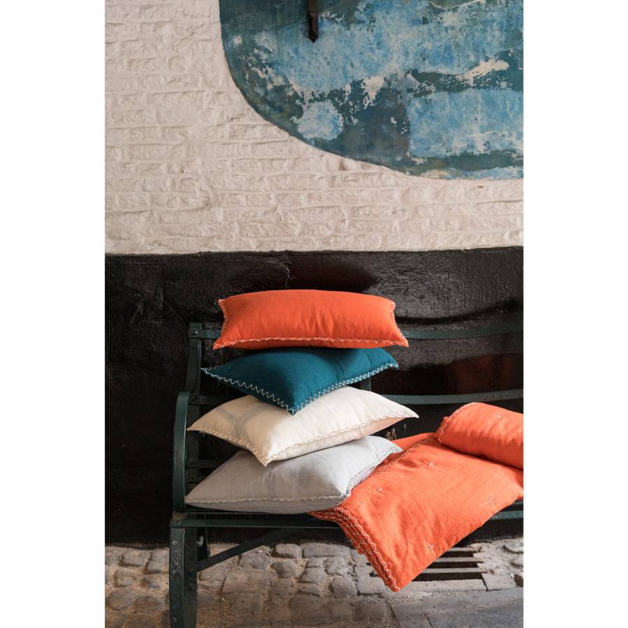 Насладитесь комфортом этой подушки с хлопковой изнанкой и лицевой частью из хлопка и льна. Идеально подходит для любого сезона: лен сохраняет прохладу летом и мягко согревает в самые холодные ночи. Благодаря потайной молнии полиэстеровая вставка легко вынимается для ухода за подушкой. Натуральный материал и отделка с плоской вышивкой и оборкой делают эту подушку самостоятельным декоративным элементом, который добавит современный штрих в ваш интерьер. Дайте волю своему воображению, комбинируя эту подушку с другими подушками, одеялом и подходящим покрывалом из коллекции Nala различных размеров и цветов.