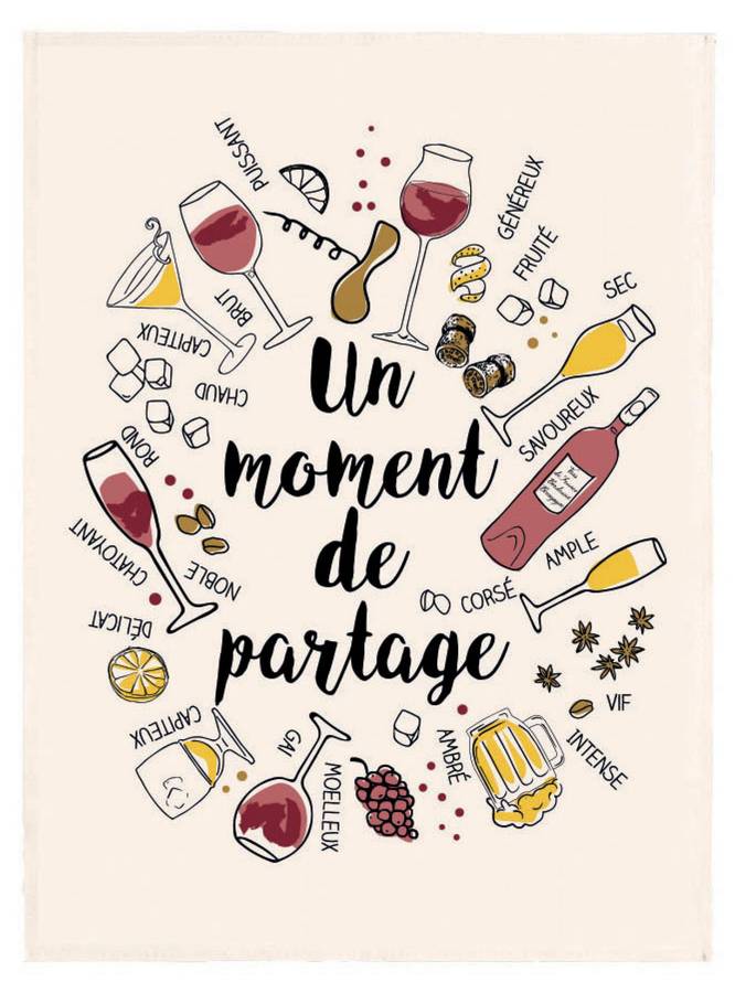 Чтобы создать приятную атмосферу во время аперитива, выберите это кухонное полотенце Le Partage, которое сочетает в себе разнообразные вкусы и ароматы вин и других крепких напитков. Благодаря своему чистому хлопковому материалу оно бережно высушивает посуду. Оно легко в уходе, долговечно и его можно стирать в стиральной машине при температуре до 40°C. Рисунок на этом кухонном полотенце нанесен методом шелкографии - древней техники, обеспечивающей долговечность. Также доступны другие кухонные аксессуары с надписями. Это кухонное полотенце от бренда Winkler.
