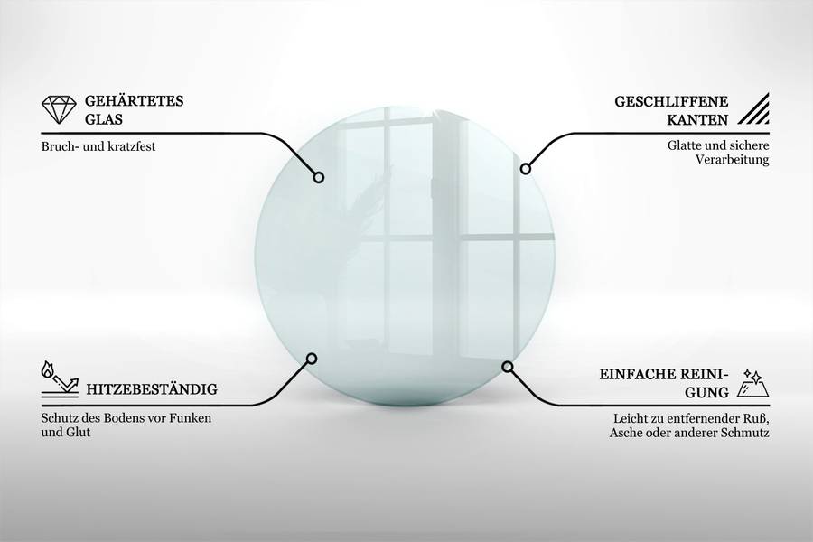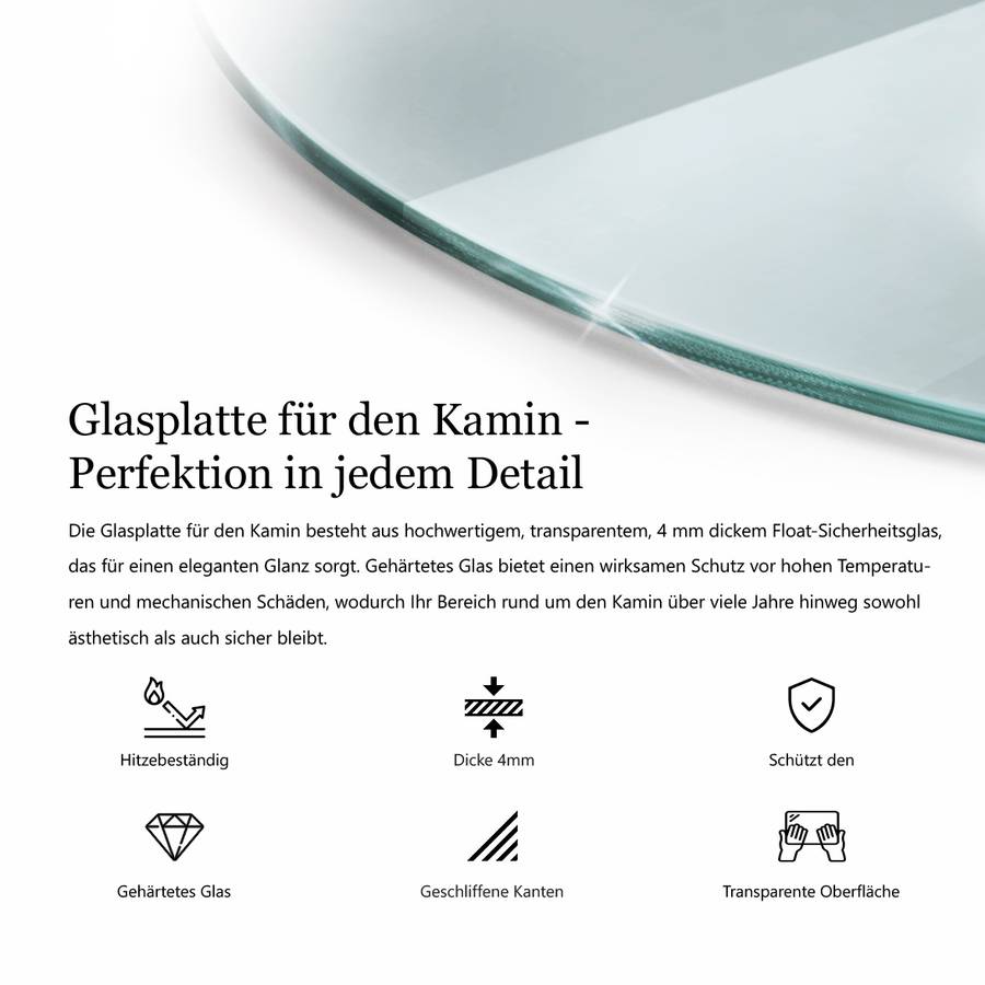 Прозрачное стеклянное основание - идеальное решение для защиты пола под отдельно стоящими печами или каминами. Изготовлено из высококачественного однослойного безопасного стекла толщиной 4 мм, оно сочетает в себе функциональность и сдержанную элегантность и гармонично вписывается в любой жилой интерьер - современный, деревенский или индустриальный.
