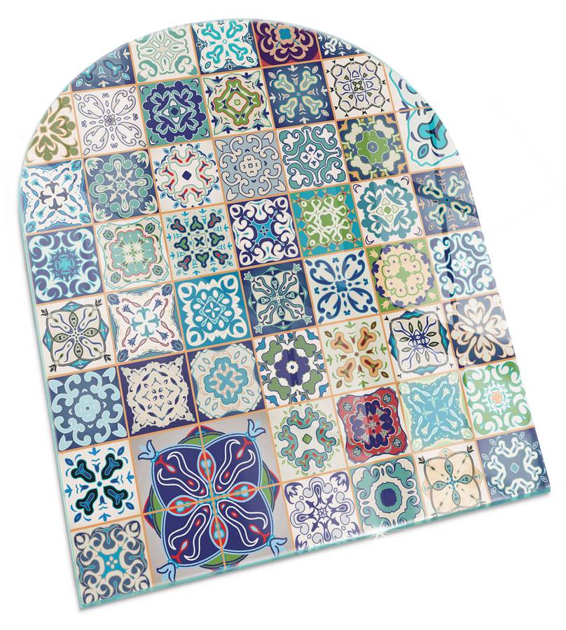 Стеклянный коврик с напечатанным рисунком для камина - функциональная защита с дизайном.