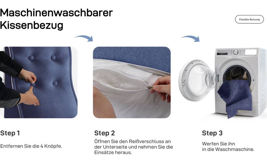 Съемный чехол на молнии позволяет легко отделить сердцевину подушки от чехла. Чехол можно стирать в стиральной машине, он сохраняет свою форму (рекомендуется: холодная вода, щадящий режим).