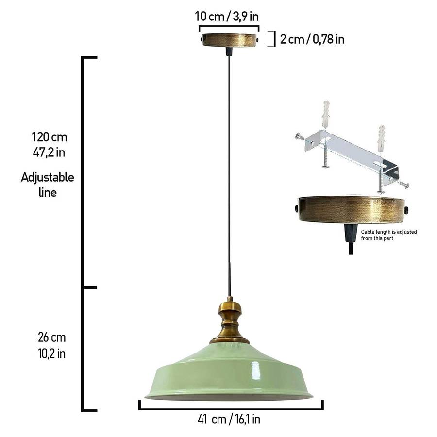 ТЕХНИЧЕСКАЯ ИНФОРМАЦИЯ И ВЫСОКОКАЧЕСТВЕННЫЕ МАТЕРИАЛЫ: Деревянный подвесной светильник изготовлен из металла (размер: как на рисунке), цоколь: E27. Можно использовать светодиодные, галогенные и обычные лампочки мощностью до 60 Вт. Лампочка в комплект не входит. Напряжение: 120-240 В. Можно использовать с диммером. РАЗМЕРЫ И РЕГУЛИРУЕМАЯ ВЫСОТА: высота 28 см, диаметр 41 см. Диаметр круглого потолочного крепления - 10 см. В комплект входит прочный регулируемый по длине кабель длиной 120 см. Длину кабеля можно отрегулировать в соответствии с вашими предпочтениями и дизайном, и можно повесить выше или ниже по желанию.