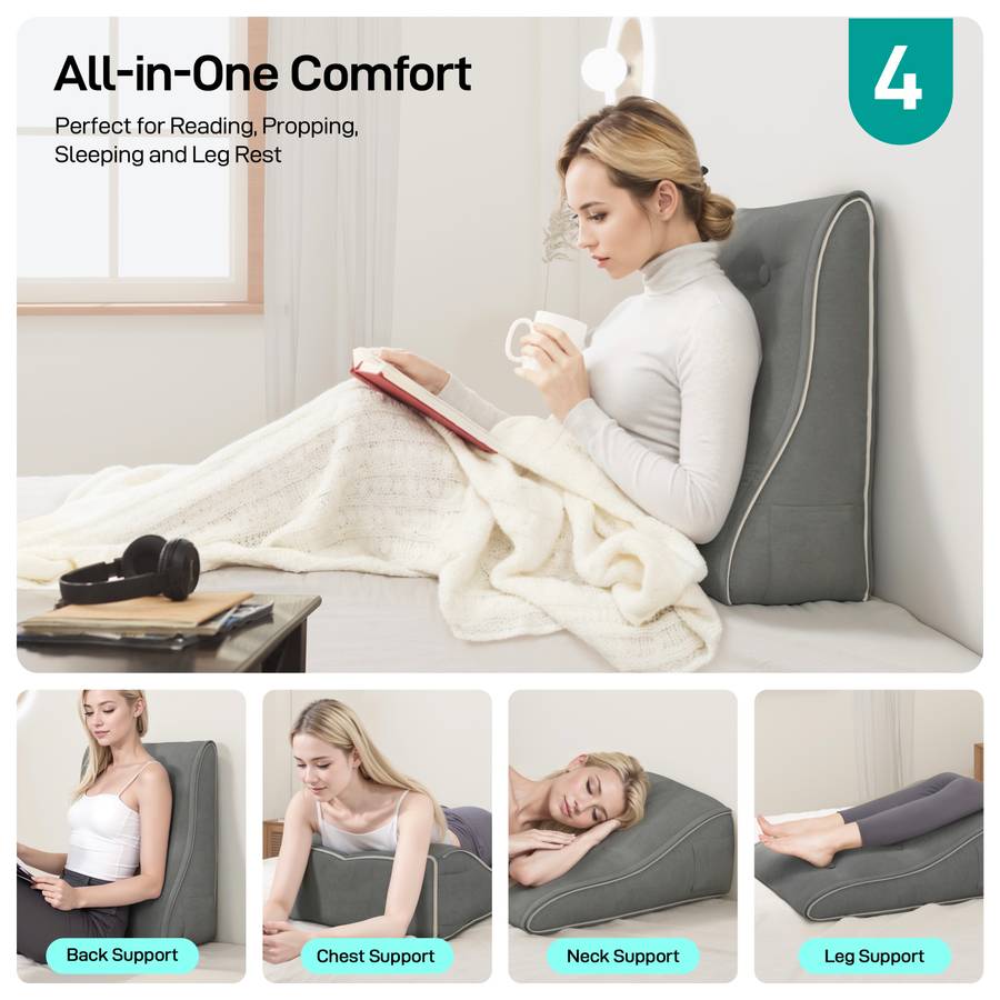 Эта бархатная клиновидная подушка идеально подходит для чтения в постели. Разработанная экспертами и тщательно протестированная в соответствии с вашими потребностями, она идеально адаптируется к контурам вашей спины. Она обеспечивает оптимальную поддержку спины и поясницы, позволяя вам расслабиться во время чтения, просмотра телевизора или работы с ноутбуком. Она также снижает давление при длительном сидении, обеспечивая больший комфорт. Она также имеет боковые карманы для мелких предметов, таких как телефон или пульт от телевизора.