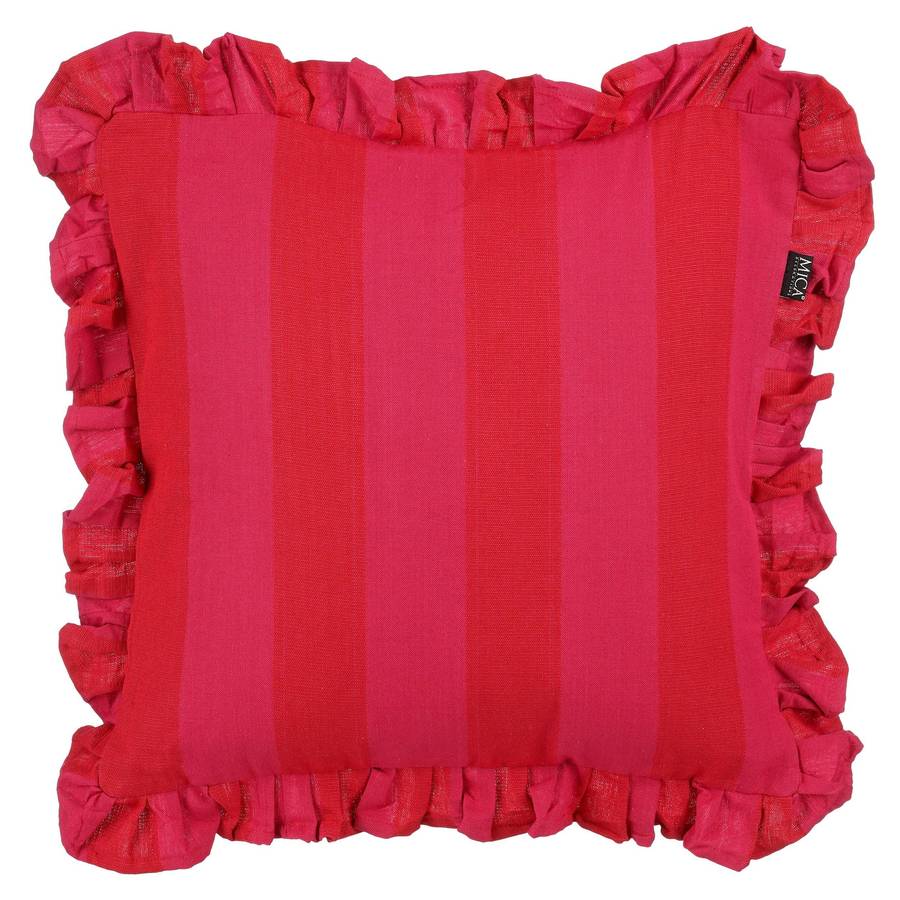 Ищете аксессуар, который добавит особый шарм вашему дому? Тогда эта квадратная декоративная подушка от Mica Decorations - то, что вам нужно. Она украшена игривыми оборками и эффектным узором в розово-красную полоску. Подушка изготовлена из мягкого хлопка. Размеры: 45 см в длину, 45 см в ширину и 10 см в высоту. Она станет изюминкой вашего дивана, кровати или любимого кресла. Комбинируйте подушку с другими узорами или сделайте ее более простой, чтобы привлечь внимание.
