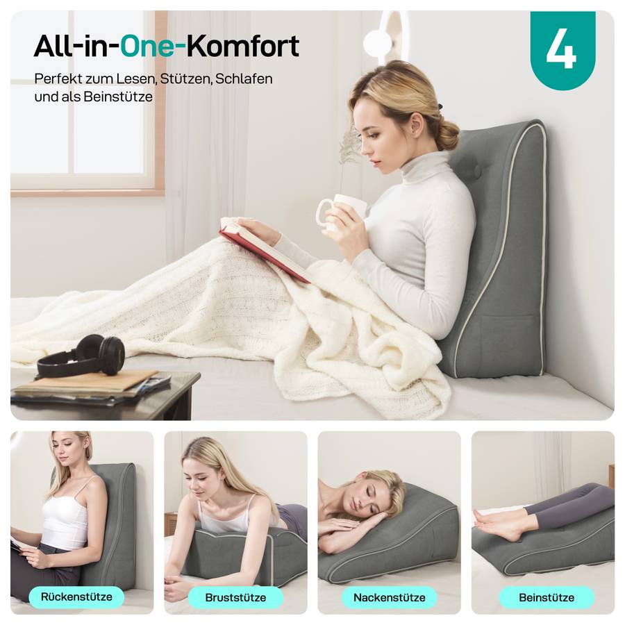 Эта бархатная клиновидная подушка высотой 55 см обеспечивает оптимальную поддержку от талии до шеи - в отличие от традиционных подушек. Прислонившись к стене или на диване, вы будете наслаждаться непревзойденным комфортом.