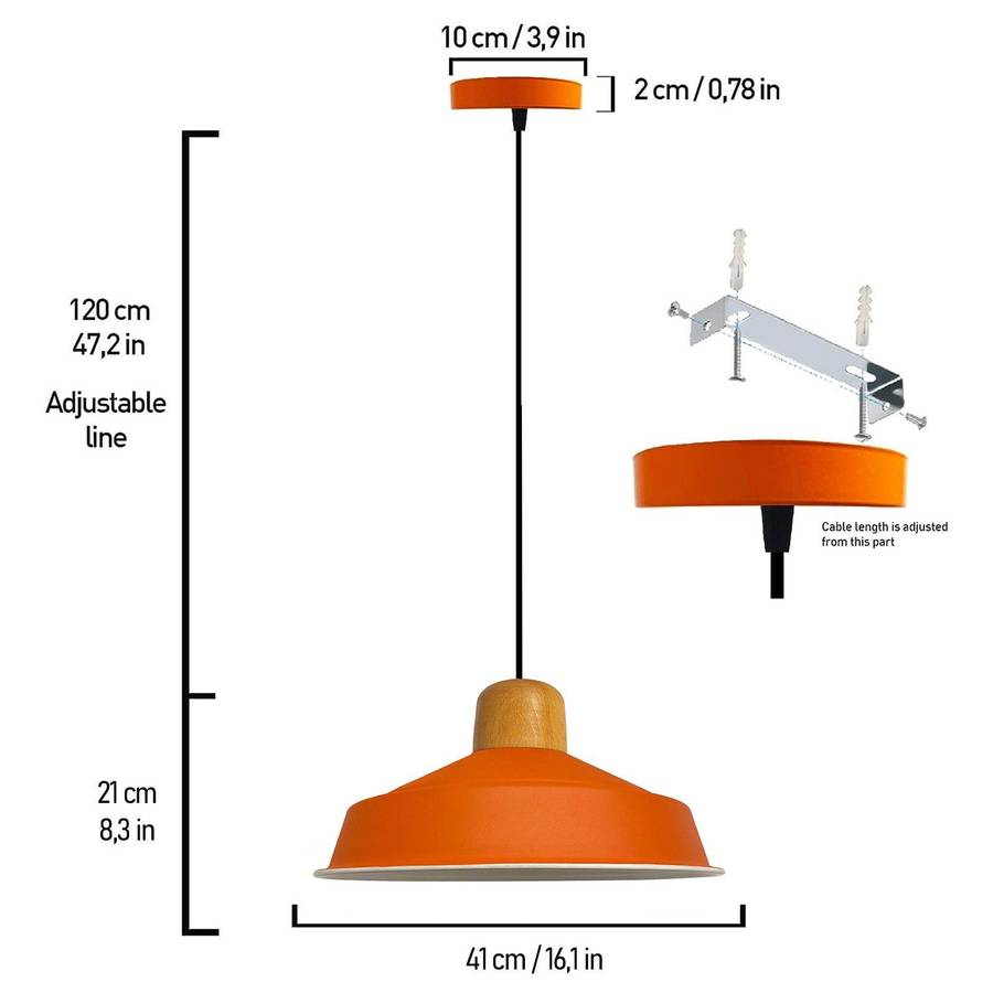 ТЕХНИЧЕСКАЯ ИНФОРМАЦИЯ И ВЫСОКОКАЧЕСТВЕННЫЕ МАТЕРИАЛЫ: Деревянный подвесной светильник изготовлен из металла (размер: как на рисунке), цоколь: E27. Можно использовать светодиодные, галогенные и обычные лампочки мощностью до 60 Вт. Лампочка в комплект не входит. Напряжение: 120-240 В. Можно использовать с диммером. РАЗМЕРЫ И РЕГУЛИРУЕМАЯ ВЫСОТА: высота 28 см, диаметр 41 см. Диаметр круглого потолочного крепления - 10 см. В комплект входит прочный регулируемый по длине кабель длиной 120 см. Длину кабеля можно регулировать в соответствии с вашими предпочтениями и дизайном, и можно подвешивать выше или ниже по желанию.