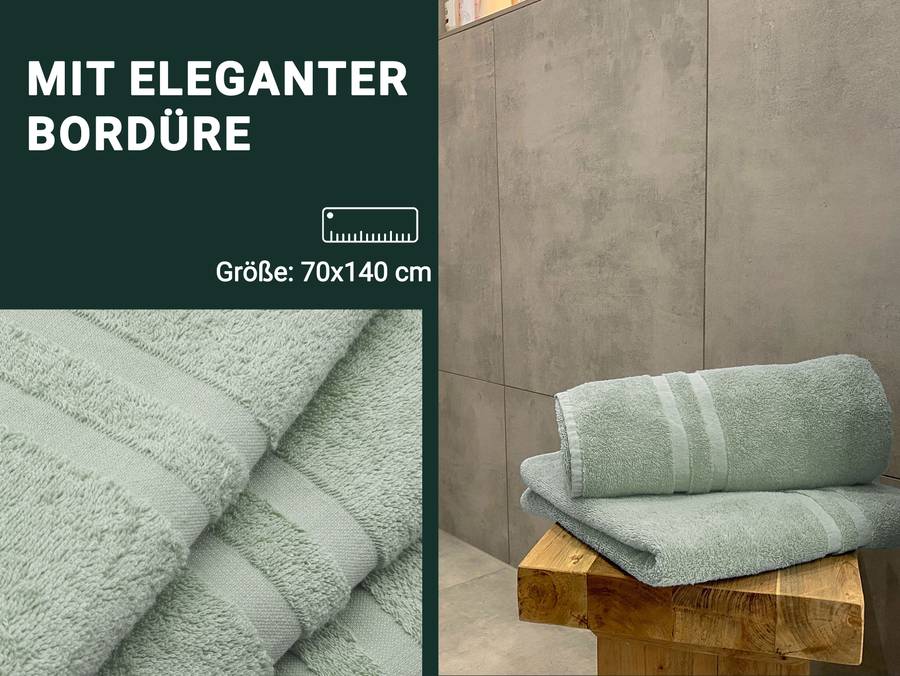 Найдите идеального спутника для любого отдыха с нашими высококачественными банными полотенцами! Размером 70 x 140 см, они обеспечивают комфорт и функциональность, которые вы ожидаете в ванной комнате, сауне или бассейне. Они идеально подходят не только для вытирания после освежающего душа, но и для расслабления после сауны или плавания в бассейне. Наши банные полотенца изготовлены из 100% высококачественного хлопка и обладают отличной впитываемостью, а также приятны на ощупь. Плотность 450 г/м² делает их особенно прочными и легкими. Простые в уходе и функциональные - наши банные полотенца можно стирать при температуре до 60 °C и сушить в стиральной машине. Это гарантирует их свежесть и гигиеничность. Доверьтесь качеству и долговечности нашей продукции, которая дарит вам удовольствие долгие годы. Побалуйте себя лучшим банным полотенцем, которое идеально подойдет для вашего дома, отдыха и приключений. Превратите каждую сушку в удовольствие! Сделайте мир лучше - выбирайте качество и комфорт для своей повседневной жизни.