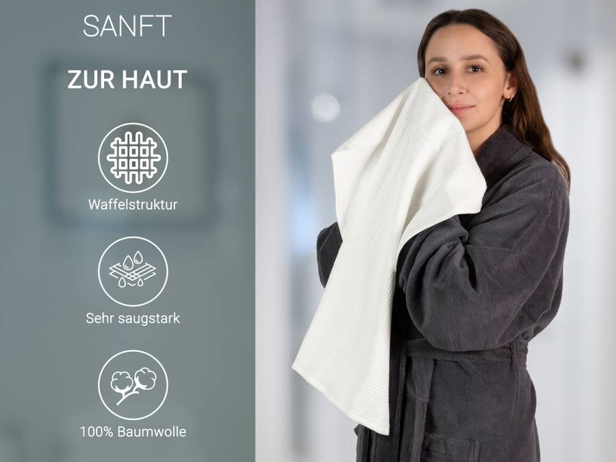 Откройте для себя универсальные полотенца, идеально подходящие для любого использования. Будь то в ванной комнате или сауне, наши полотенца обеспечат максимальный комфорт и гигиену в вашей повседневной жизни. Благодаря практичному размеру 50 x 70 см они идеально подходят для использования в самых разных местах. 100% хлопок гарантирует не только приятные ощущения на коже, но и высокую впитываемость. При плотности 350 г/м² эти полотенца обладают приятной, роскошной плотностью, которая впечатляет как при использовании, так и во время отдыха. Особого внимания заслуживает их способность стираться при температуре до 95 °C. Это обеспечивает тщательную очистку и, таким образом, гарантирует высочайшие гигиенические стандарты. Кроме того, полотенца можно сушить при низких температурах, что подчеркивает их долговечность и простоту ухода. Будь то после освежающего сеанса в сауне или во время перелета, наши полотенца станут незаменимым спутником. Их легко переносить, и они обеспечат вам тот комфорт, которого вы заслуживаете. Доверьтесь качеству и функциональности наших полотенец и наслаждайтесь ощущением свежести и чистоты в любое время и в любом месте. Убедитесь сами в первоклассном качестве изготовления и высокой впитывающей способности. Подарите себе заслуженное ощущение комфорта - дома, в сауне или даже в путешествии. Ваше здоровье и благополучие - наш главный приоритет. Выберите наши полотенца и почувствуйте разницу!