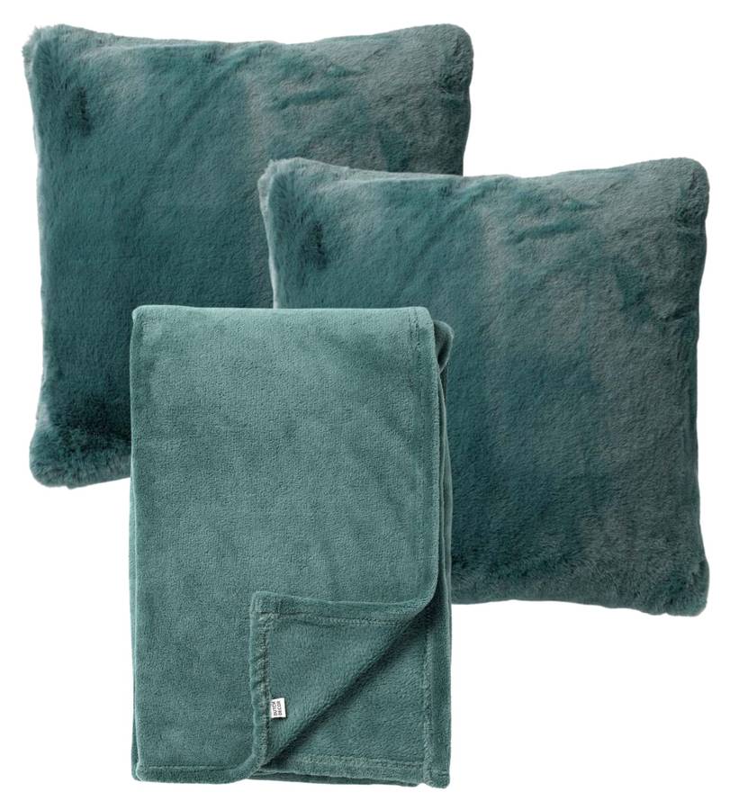 Dutch Decor - 3-х предметный - Декоративная подушка и плед - Essentials - Полынь зеленая - 45x45 см - Zaya & Harvey - с внутренней подушкой - Бархат