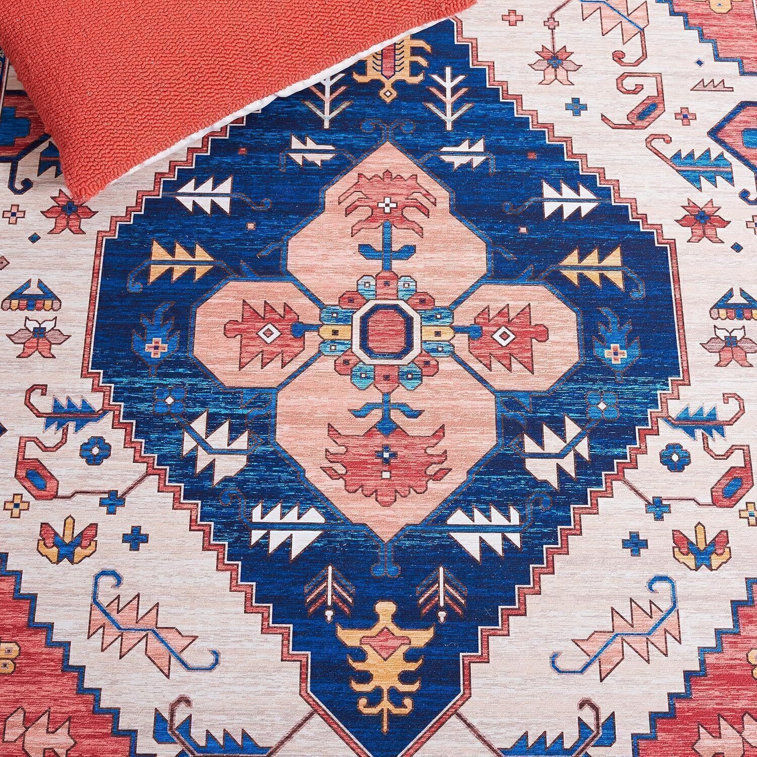 Ковер SAFAVIEH, 77 x 122 см, моющийся коллекция Tucson - , Rust & Blue, противоскользящий, идеален для помещений с высокой проходимостью: прихожая, коридор, холл, кухня, спальня (TSN133P-24) 4 557₽