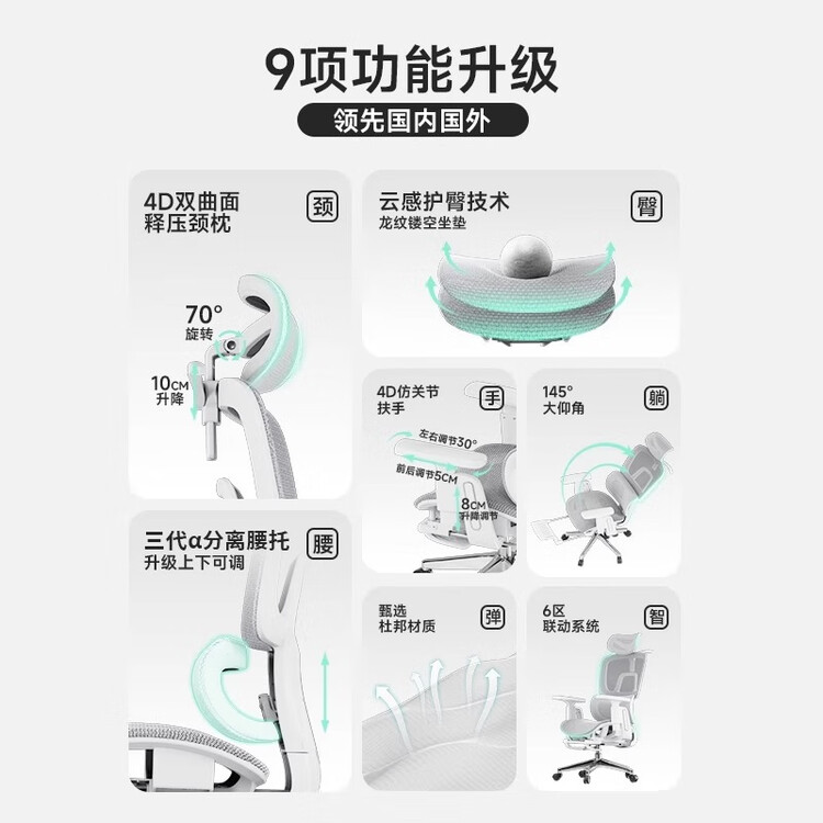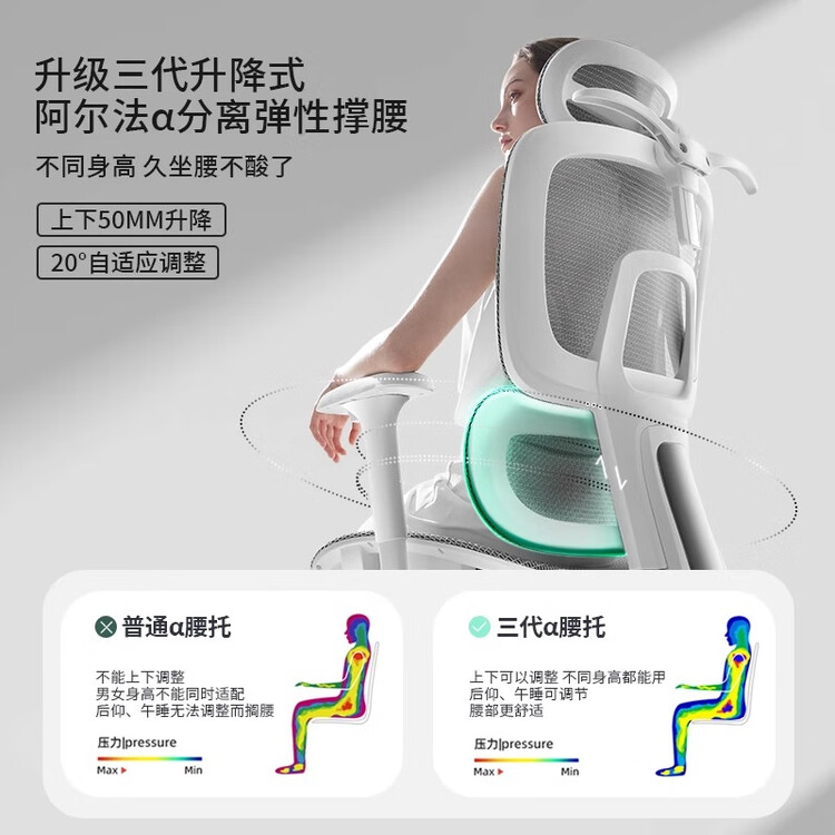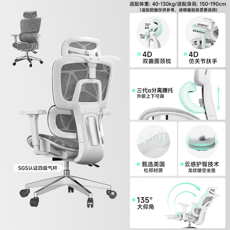 Эргономичное кресло SIHOO 2 [Premium Dragon Pattern Mesh] White And Gray | Hollow Flocked