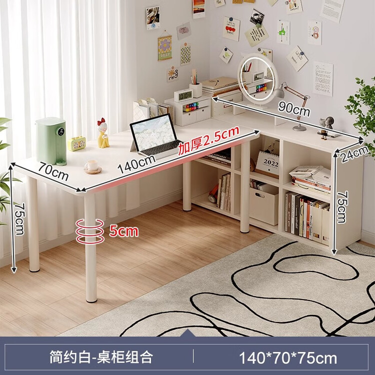 Стол 140x70 см с полузакрытым тумбочным блоком Naijia, белый, минималистичный, для дома и офиса 31 247₽