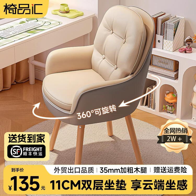 Компьютерный стул Yipinhui [Swivel Style] Off-White Gray, Cat Scratch Leather, 11CM Foam Pad, Solid Wood Legs 21 478₽