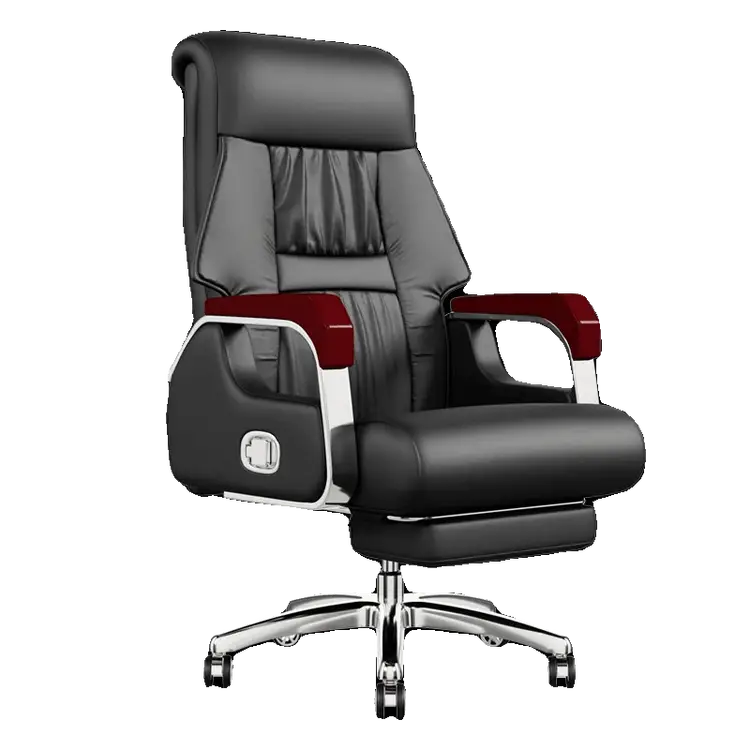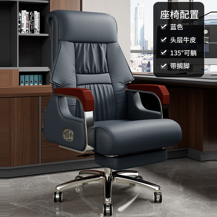 Кресло SIHOO Executive, синий кожаный с подставкой для ног