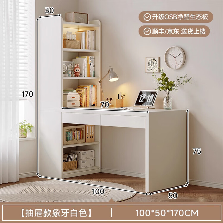 Угловой письменный стол Naijia с полками, изготовлен из экологичной OSB плиты без формальдегида, оснащен двойным ящиком, цвет ivory white, ширина 100 см.
