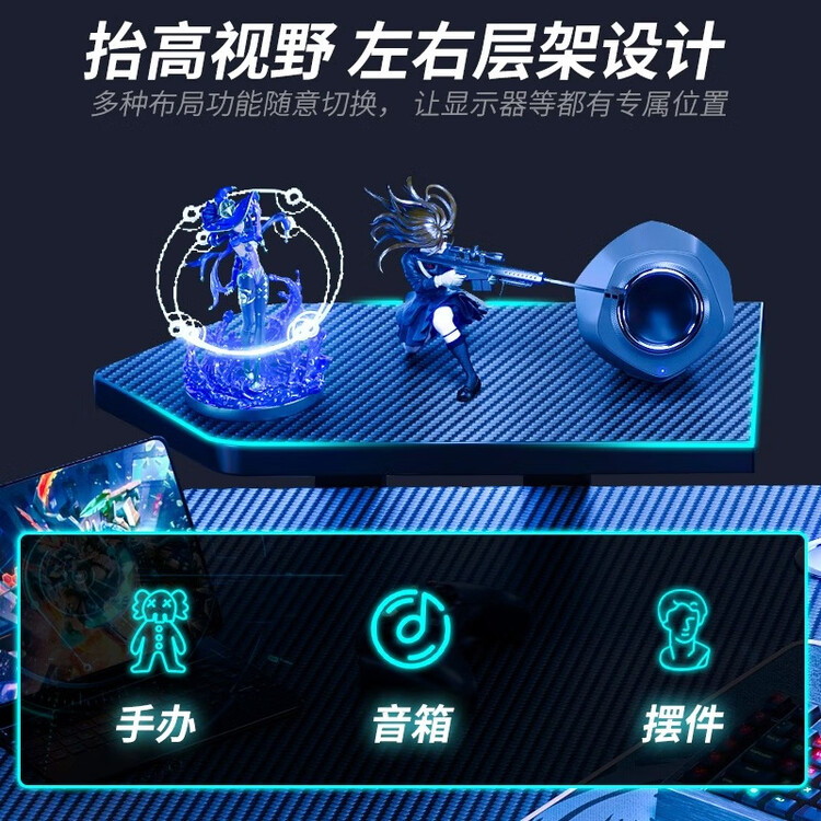Игровой стол Naijia 200x90x74 см с плавающей подставкой для ПК и двухсторонними полками.